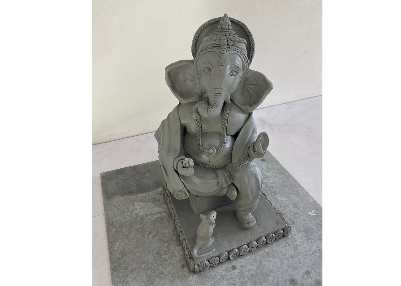 The bappa was mouldedout of clay and colored, the decoration was entirely done with eco-friendly materials by the students of 1st year in 2 days.